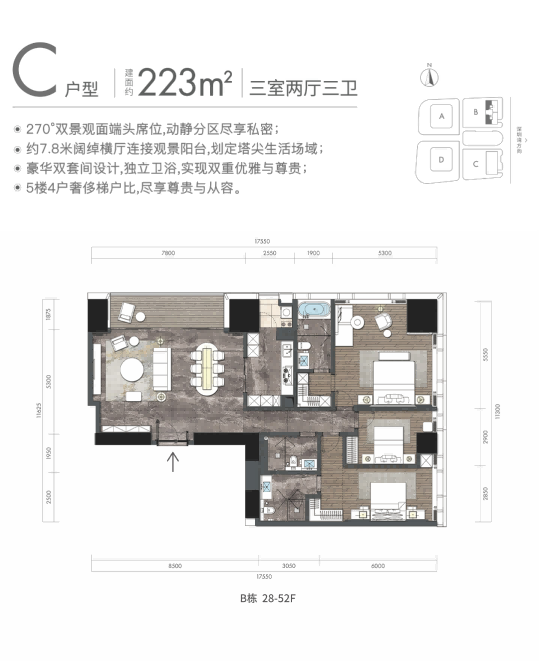 • 3室2厅3卫0厨