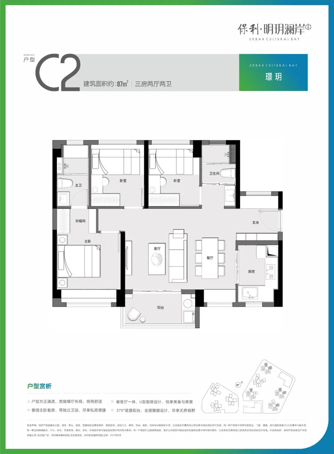 保利明玥澜岸花园分东、西两个地块建设,东地块共7栋建筑,共1622户,西地块共3栋建筑,共624户,总共2246户,均为带装修交付