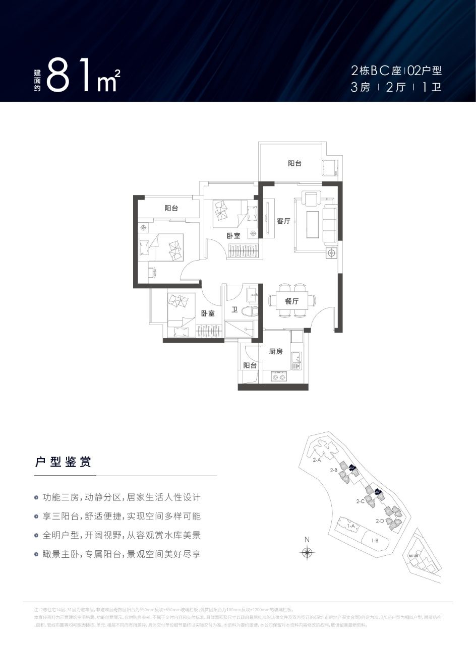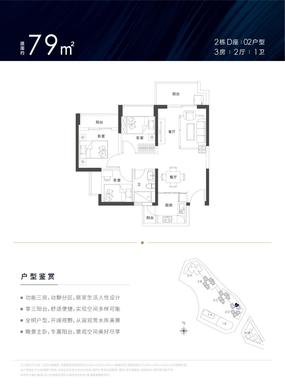 建面约78-129㎡3-4房户型,南北通透,3房3.5~3.7m,4房3.8~4.2m,罕见阔绰开间,客厅、厨房、卧室三阳台多飘窗,超高使用率。片区少有在售现楼,即见即所得,因为看得见,所以更安心。
