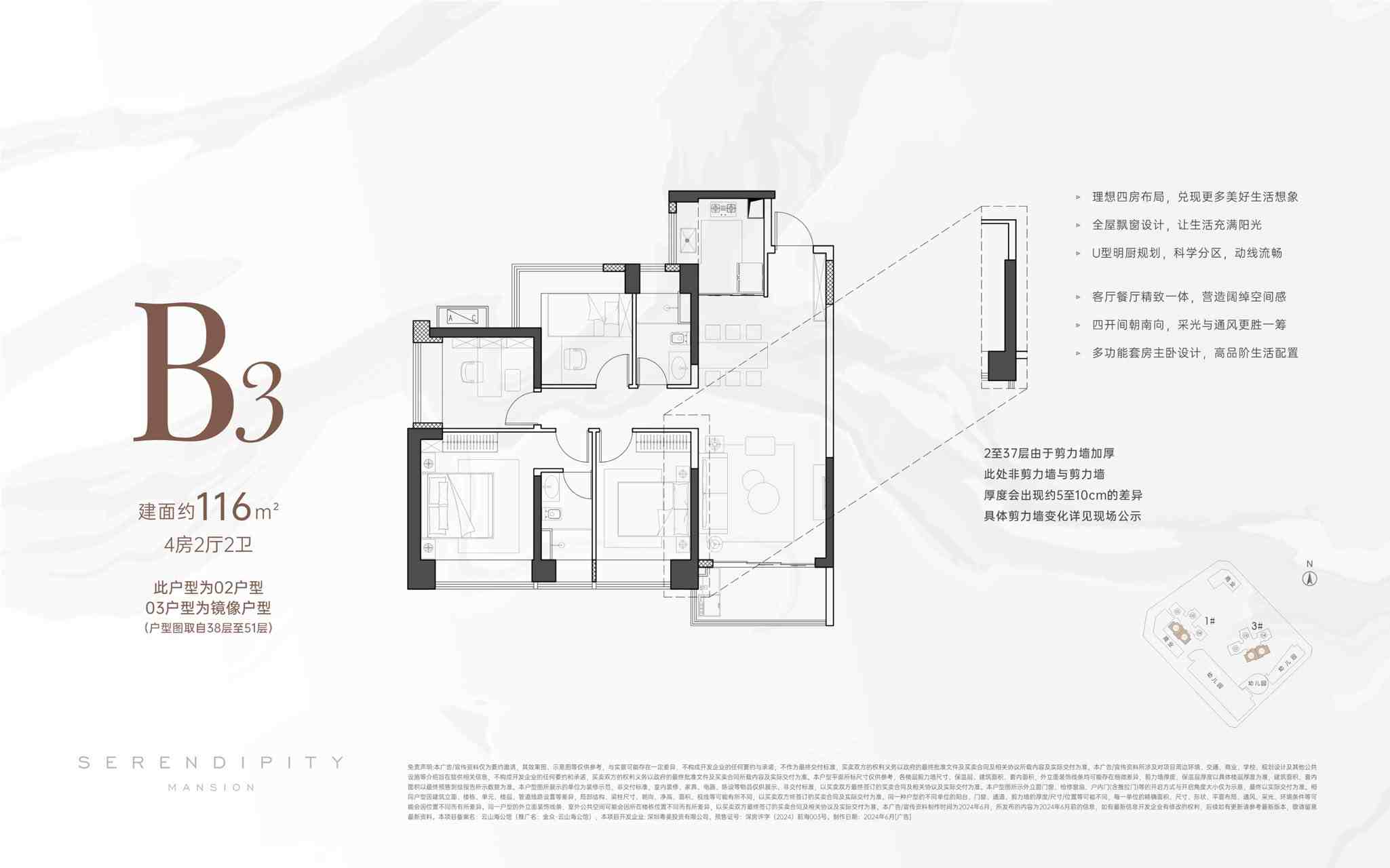 金众云山海公馆项目,主要由东、西两个地块组成。西区地块占地面积,约为2.2万㎡,建筑面积约10.46万㎡,容积率3.45,包含了约7.26万㎡的住宅,0.54万㎡的18班幼儿园,以及其他基础配套设施。东区地块占地面积约1.35万㎡,建筑面积约9.04万㎡,容积率4.86,包含了5.97万㎡的住宅,约800㎡的商业,0.54万㎡的18班幼儿园等其他基础配套。